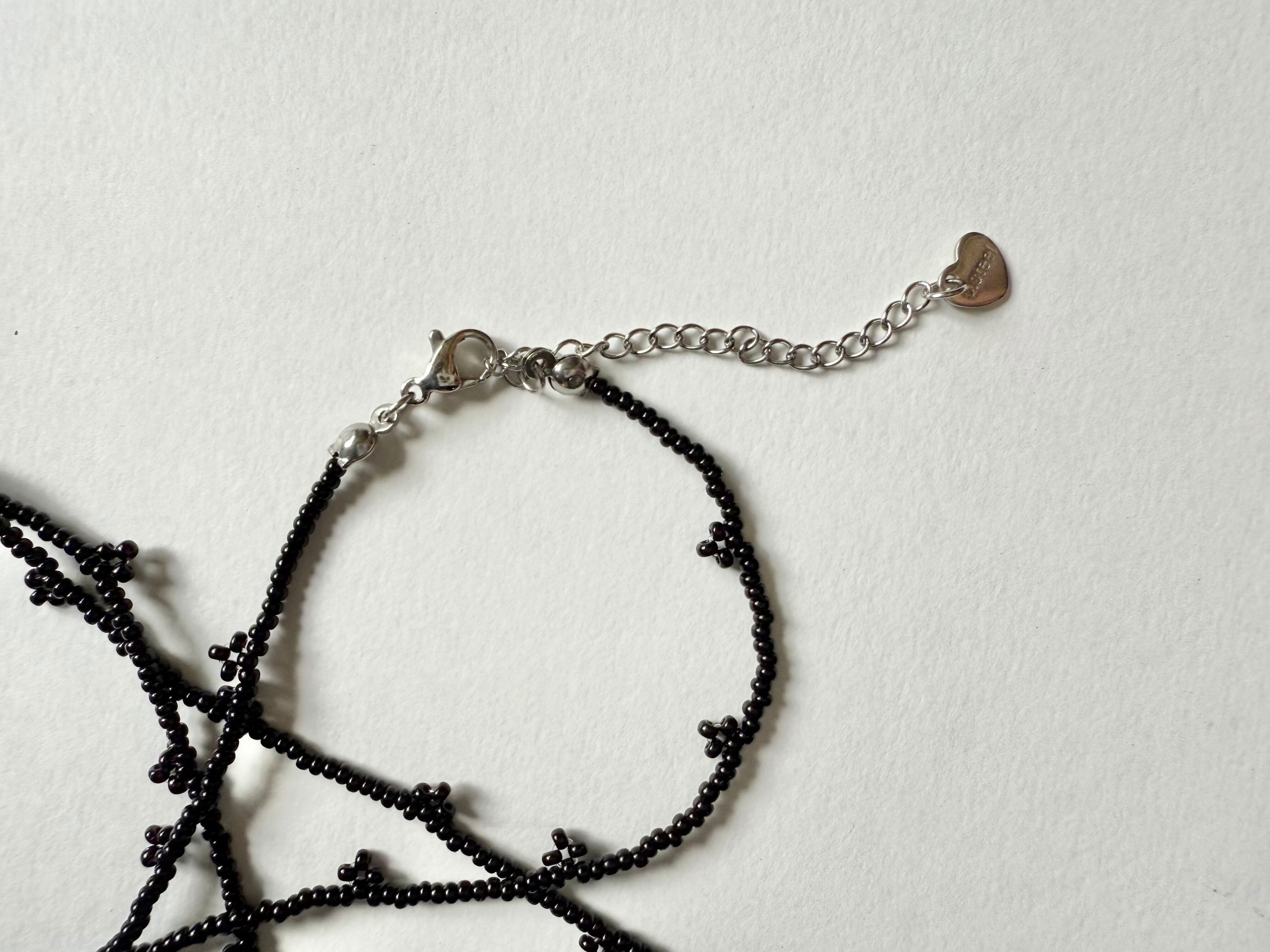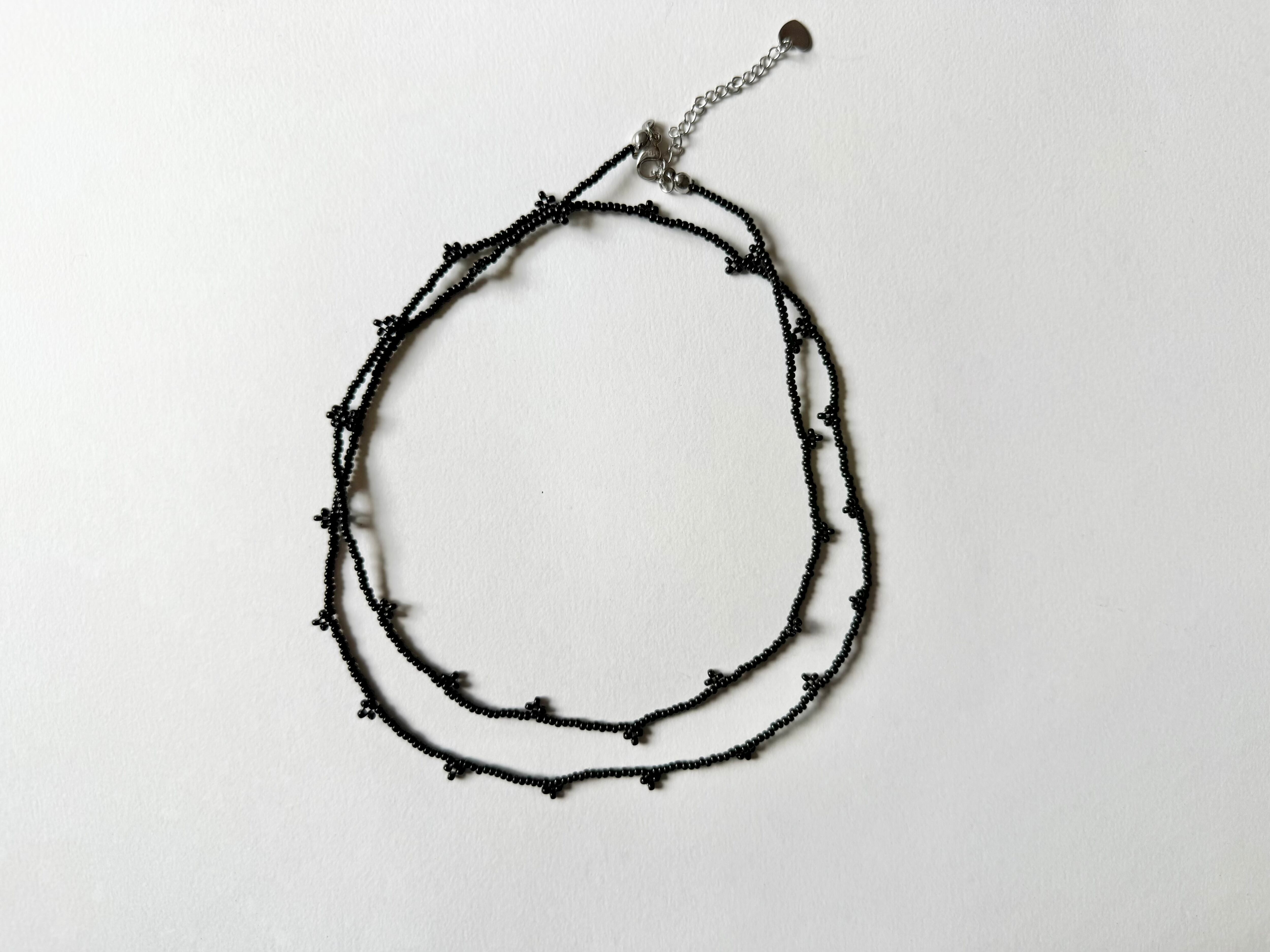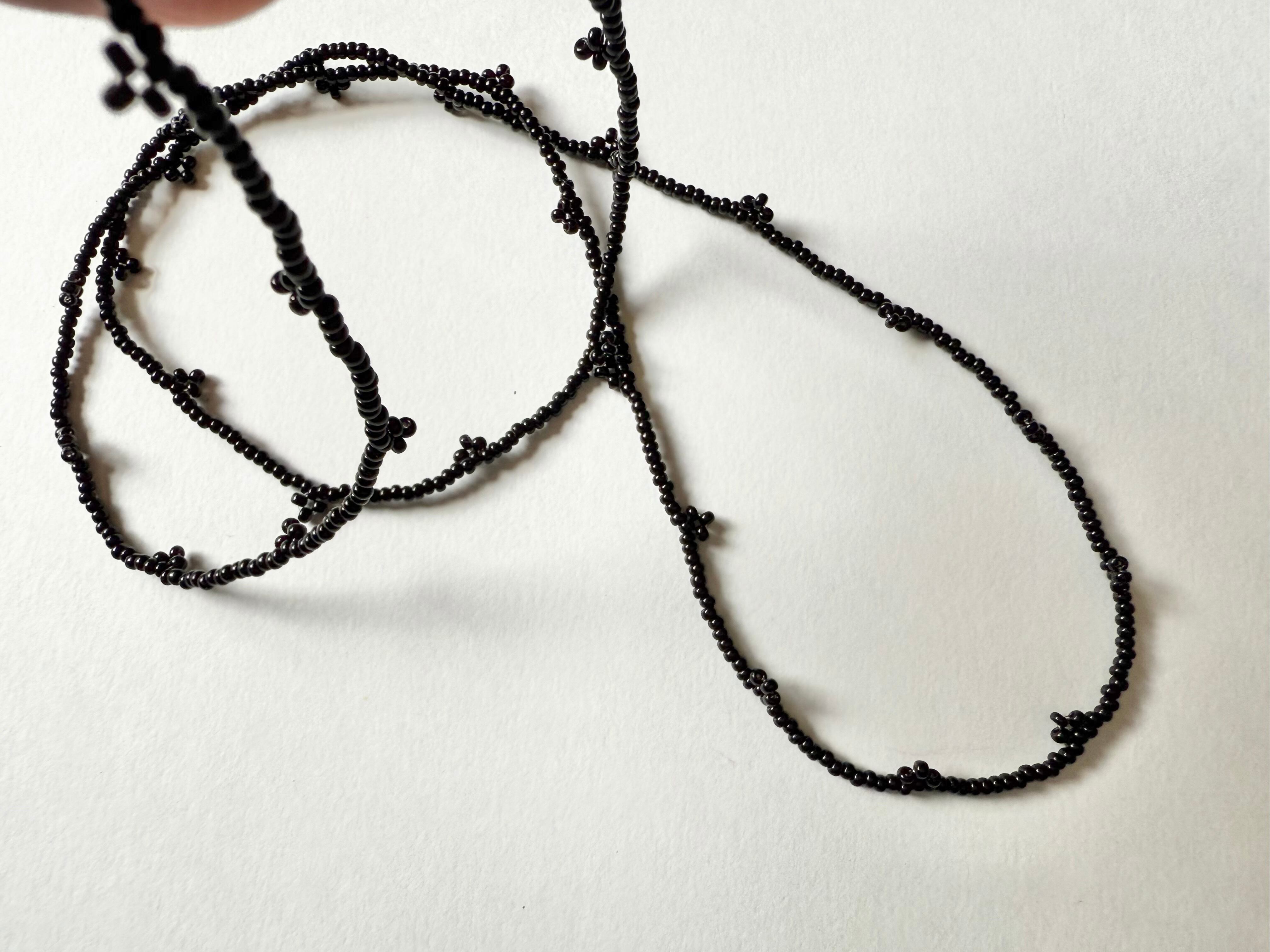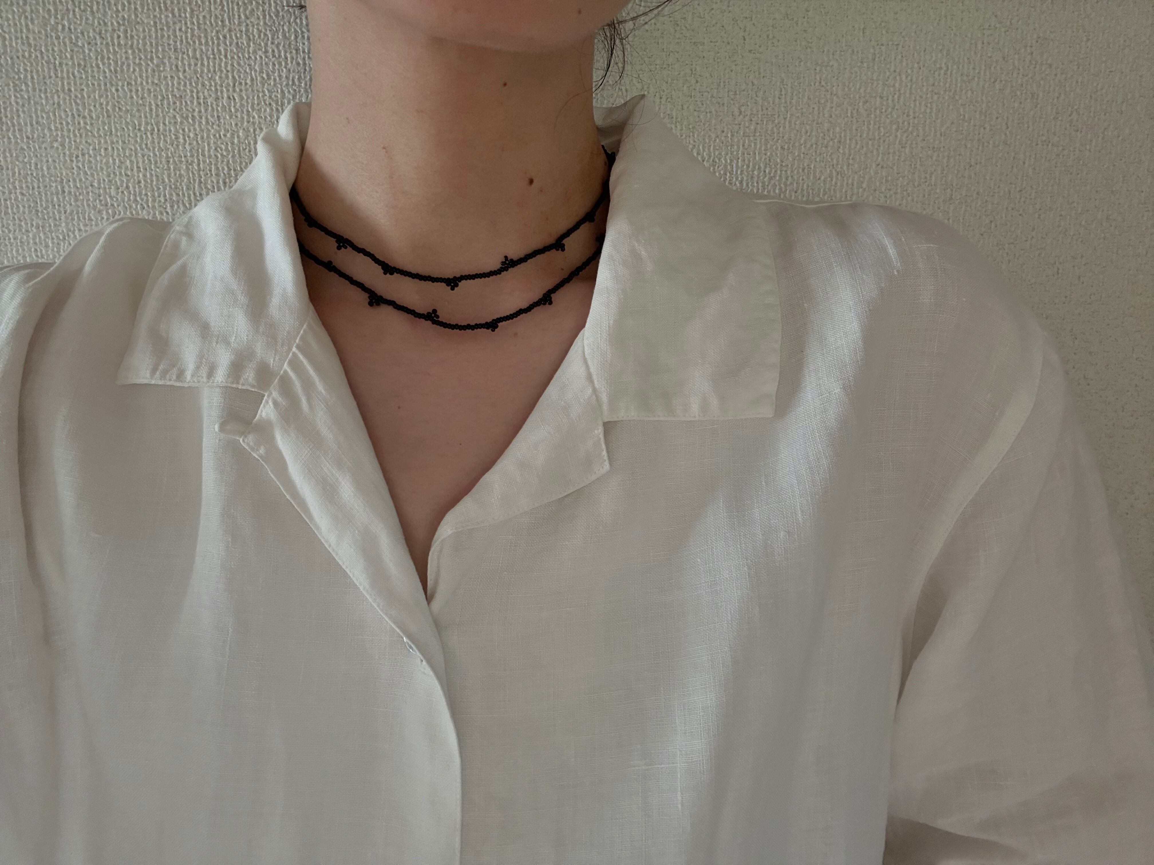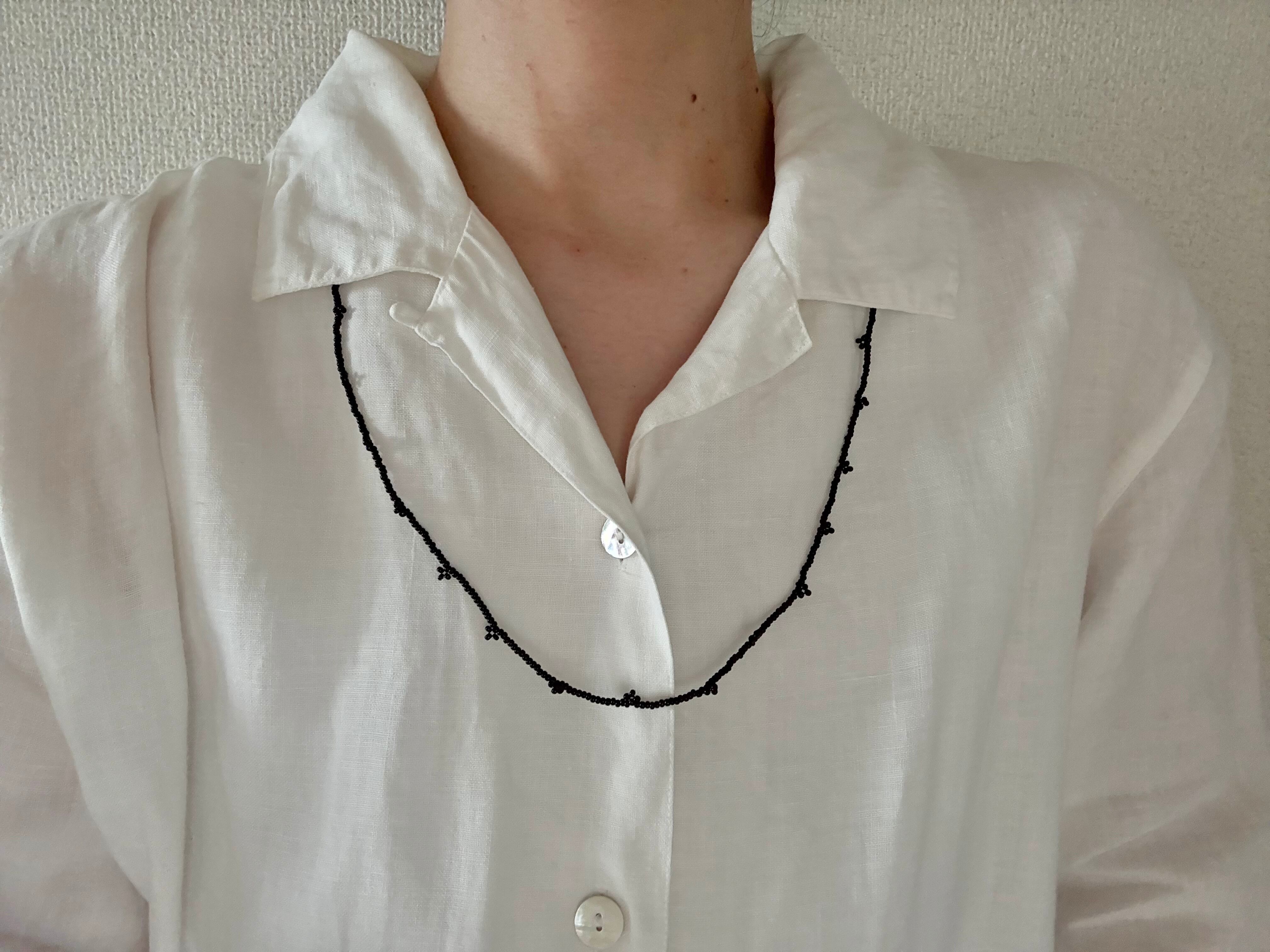 使い勝手の良い単色のビーズネックレス。小さなレースのようにしたくてダイヤ型を等間隔に配置しました。ロングのままでも、二重にしてチョーカーとしてもお使いいただけます。