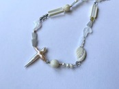 前回、嬉しいことに即完売、お問い合わせまでいただきました、クロスのパールをベースに、お気に入りのビンテージビーズ、シェルビーズ、天然石、淡水パールをランダムに詰め込みました。