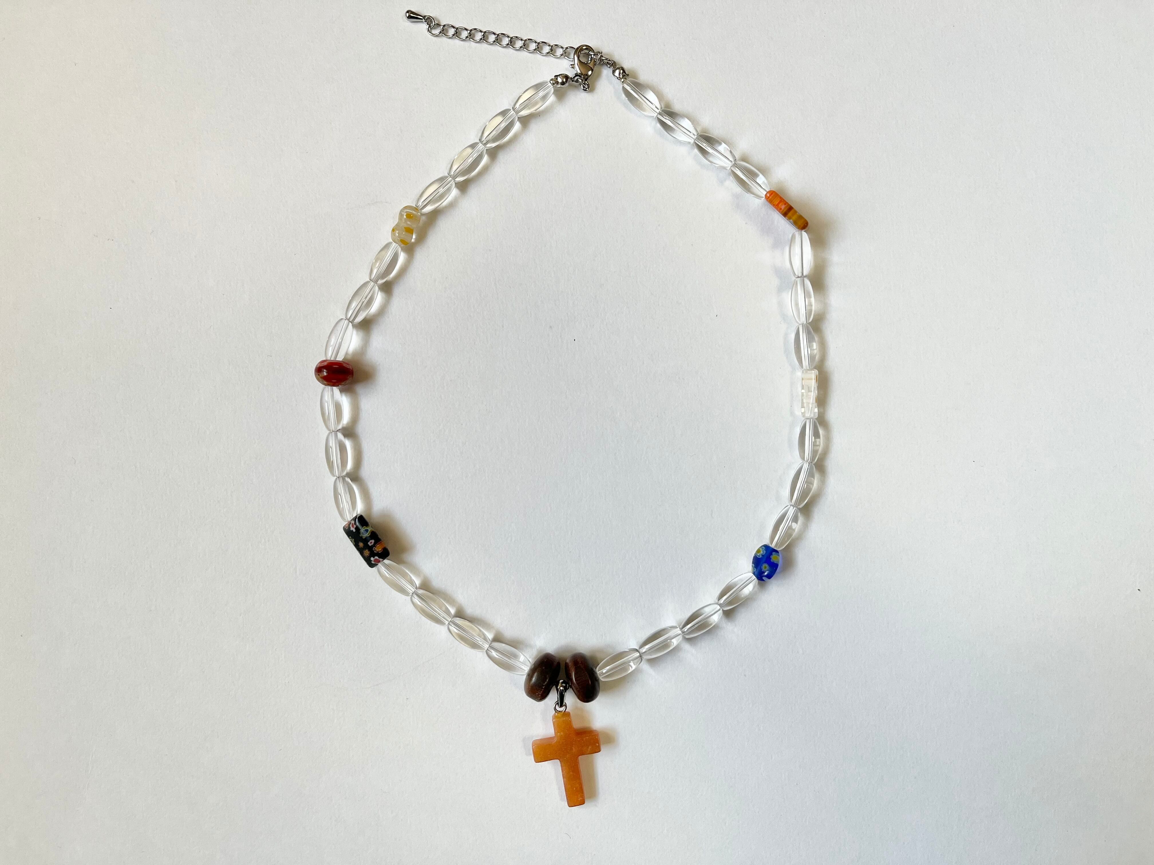 天然石のビンテージクロスチャーム。ちょっとくすんだオレンジ色です。
